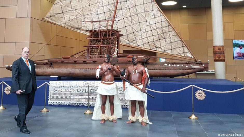 Türkiye ve Avustralya arasındaki kriz aşılamazsa COP31 etkinliği otomatikman Bonn’da düzenlenecekti. Bonn’da son olarak 2017’de bir COP etkinliği düzenlendi. Etkinliğin yapıldığı Dünya Konferans Merkezi’nin girişindeki Fiji kanosuyla “Hepimiz aynı gemideyiz” mesajı verilmişti.Fotoğraf: DW/Cengiz Özbek
