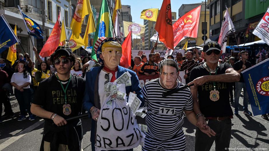 ABD’nin yüzde 50 gümrük vergisi kararına karşı Brezilya’da protesto gösterisi düzenlendiFotoğraf: Nelson Almeida/AFP/Getty Images