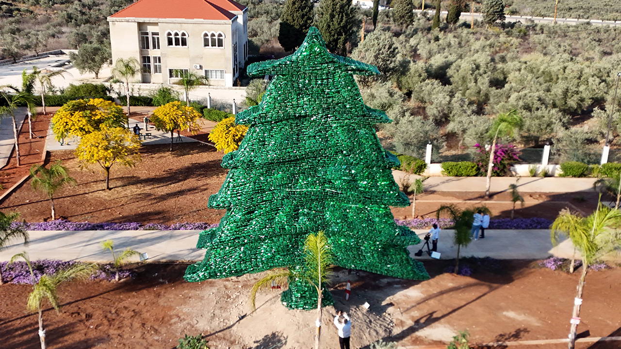 Lübnanlı Caroline Chaptini, 450 binden fazla yeşil plastik şişe kullanarak inşa ettiği ve 10 metre yüksekliğe ulaşan dünyanın …