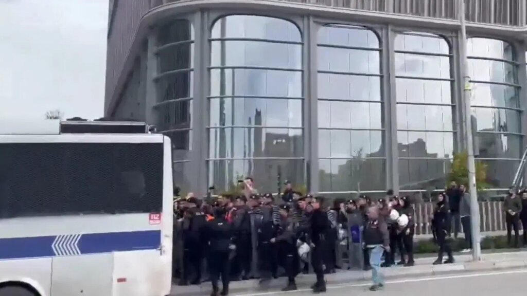 Halkbank şantiyesi önünde hakları için eylem yapan İnşaat-İş ve Dev Yapı-İş üyesi inşaat işçileri gözaltına alındı.