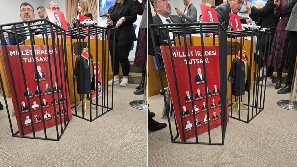 CHP grubu, Adalet Bakanlığı’nın 2026 bütçe görüşmelerinde salona temsili hücreler kurarak protesto gerçekleştirdi.