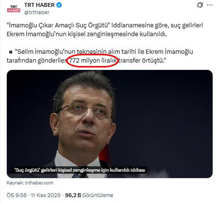 MASAK’ın evrakında bile açıkça 772 bin lira yazıyor. Ancak TRT Haber bunu ‘772 milyon lira’ diye yayımlıyor. Palavrası bin kat büyütüyor, kamu yayıncılığı kisvesiyle millete servis ediyor!