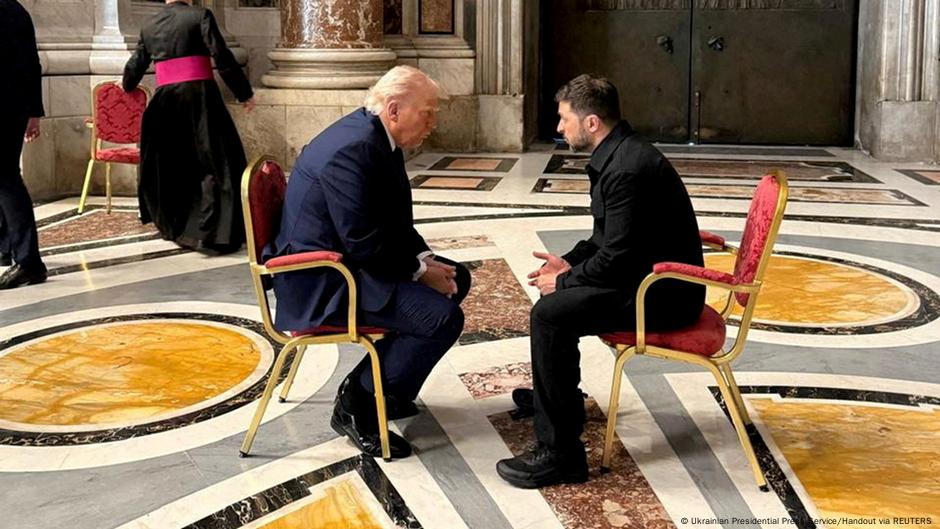 Putin ve Zelenskiy geçen ay Papa Françesko’nun cenaze töreninde görüşmüştü.Fotoğraf: Ukrainian Presidential Press Service/Handout via REUTERS