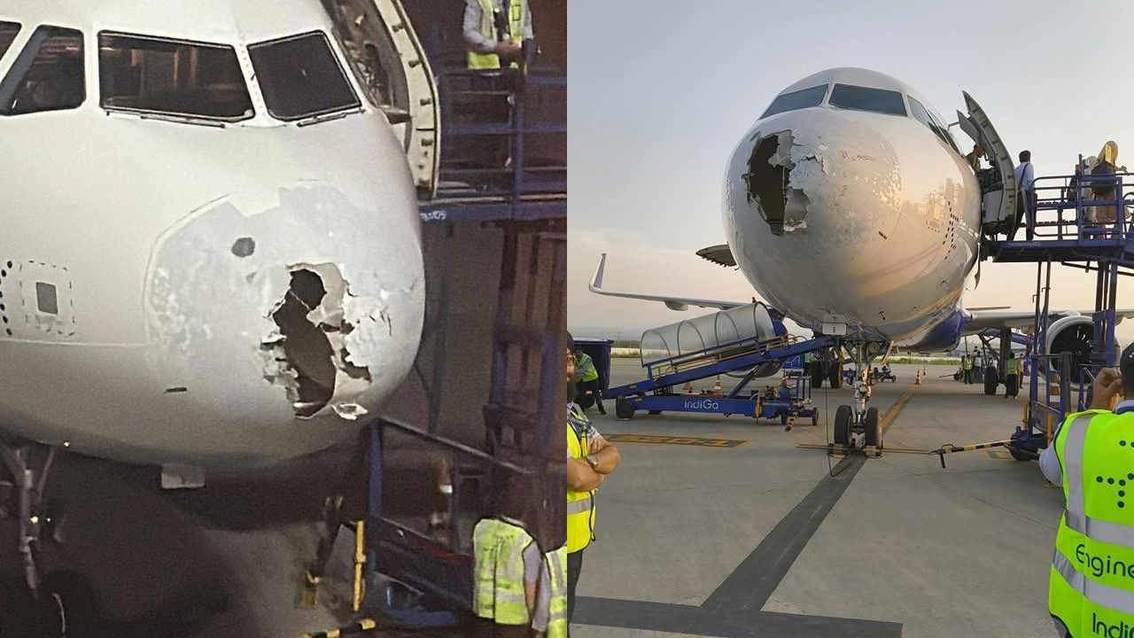 Şirket hasarın boyutuna dair ayrıntı paylaşmazken, yolcular tarafından çekilen fotoğraflar uçağın burun kısmında büyük bir delik oluştuğunu gösteriyor.