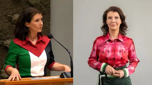 Hollanda’da Parlamento’da bütçe görüşmeleri sırasında, Filistin bayrağı renklerinden oluşan bir elbiseyle kürsüye çıkan milletvekili Esther Ouwehand, Meclis Başkanı tarafından uyarılarak kıyafetini değiştirmeye zorlandı.