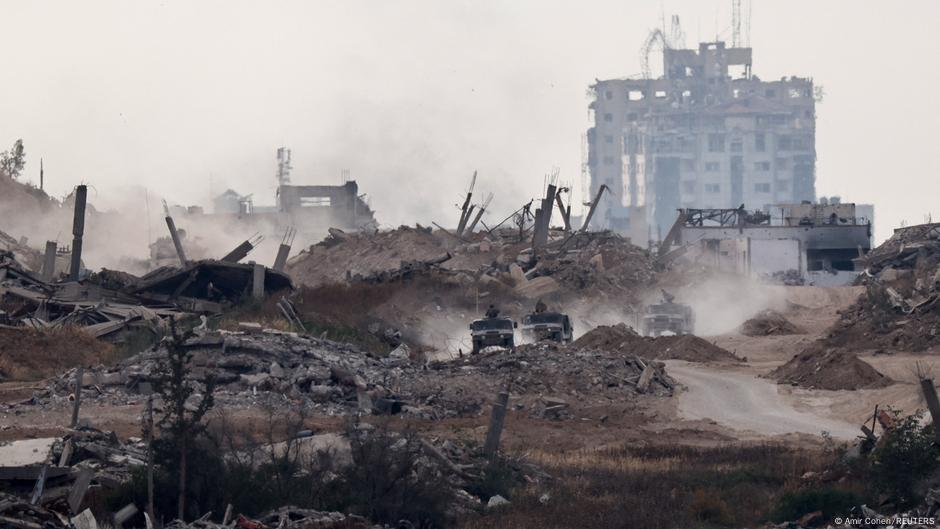 Gazze’de enkaz yığınları arasında ilerleyen İsrail askerî araçlarıFotoğraf: Amir Cohen/REUTERS
