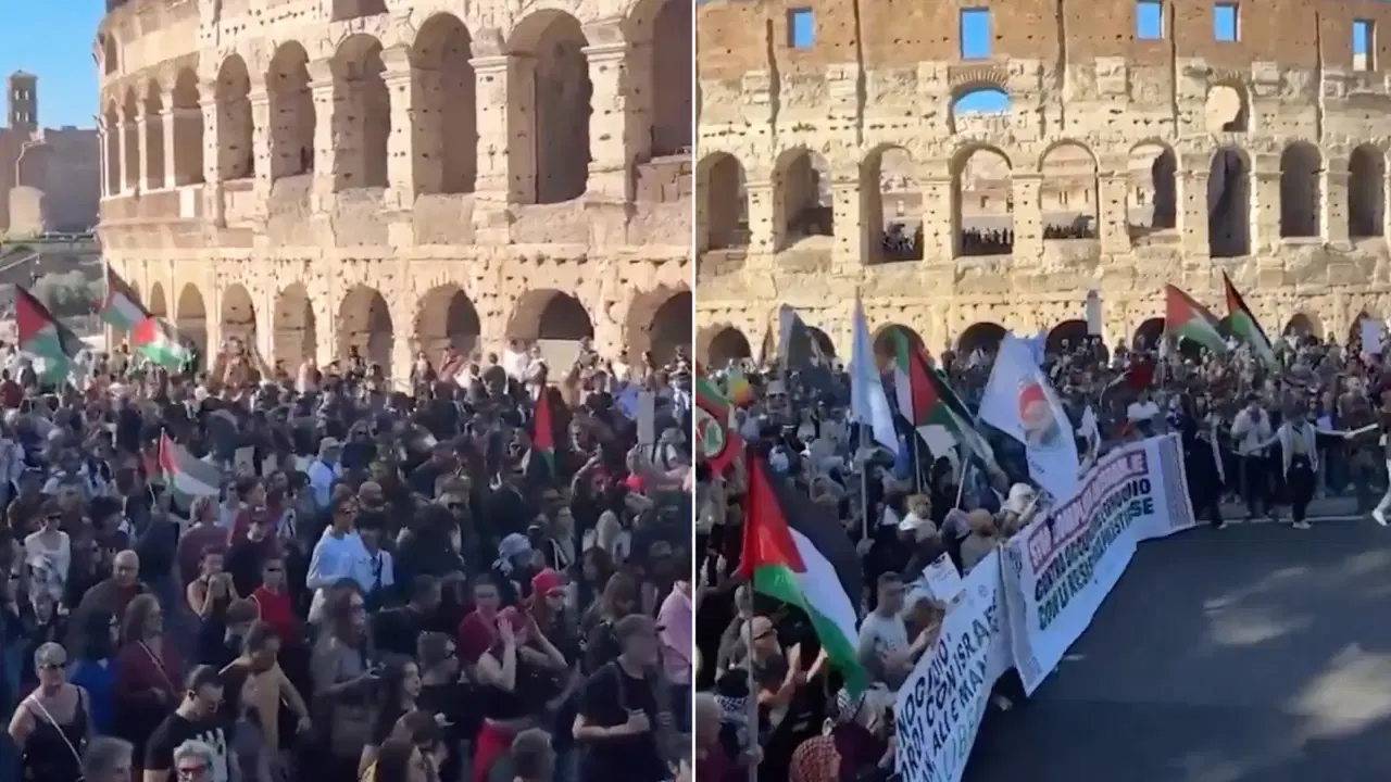 İtalya Roma’daki Piramide semtinde dün öğlenden sonra bir ortaya gelen yüzbinlerce kişi, “Soykırım Dursun” ve “İsrail’le cürüm iştirakine son” yazılı dövizleri ardında toplanarak, yürüyüşe geçti.