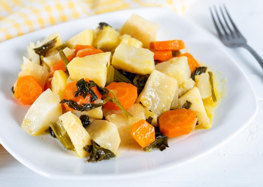 Sıcak suyu tencereye ekleyin. Kapağını kapatıp kısık ateşte sebzeler yumuşayana kadar yaklaşık 25–30 dakika pişirin.