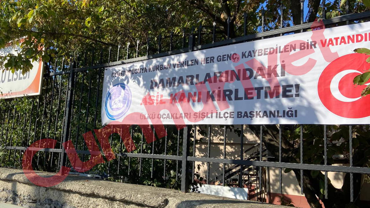 MHP ile yakın bağlarıyla bilinen gençlik örgütü Ülkü Ocakları’nın, İstanbul’un Şişli ilçesindeki bir meslek lisesinin önüne astığı pankart ise dikkat çekti.