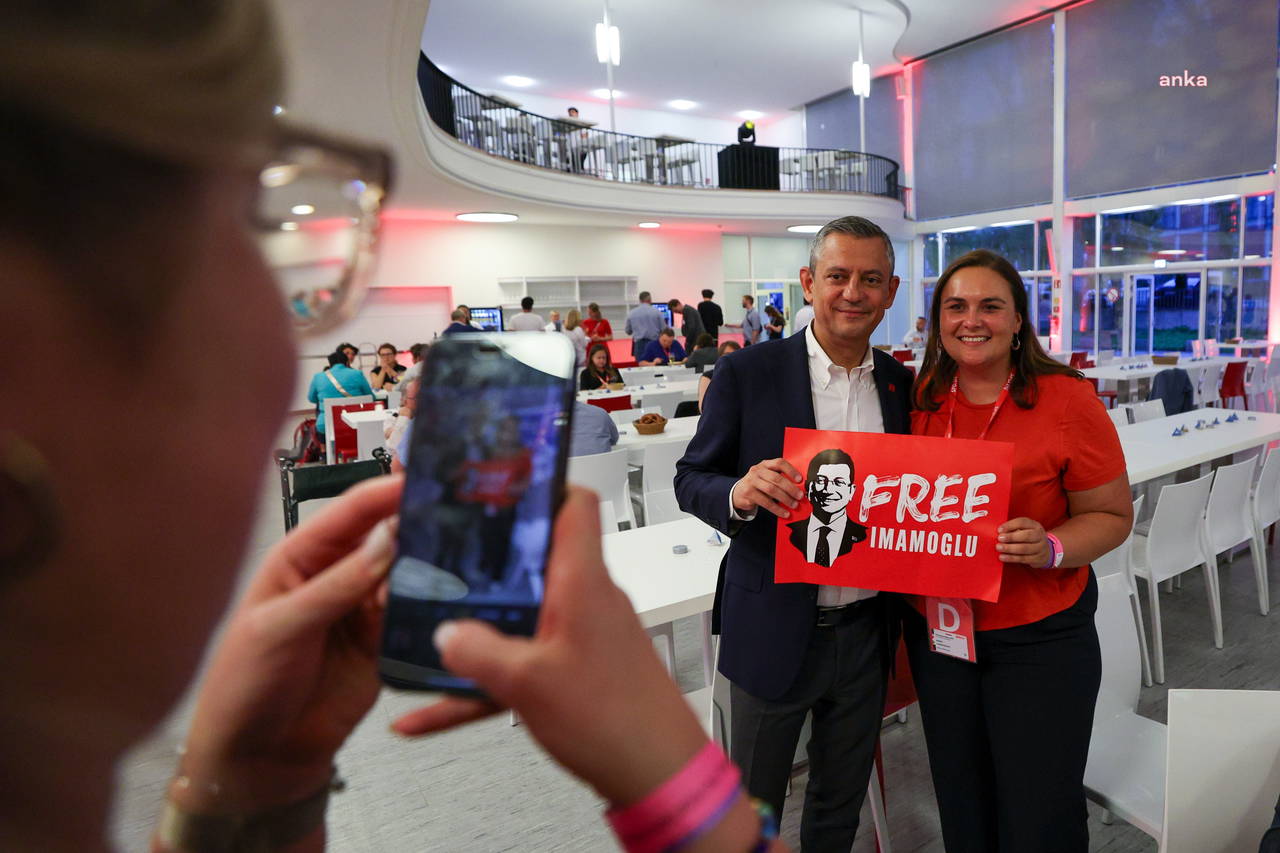 Resepsiyonda katılımcılar Özel ile “Free İmamoğlu (İmamoğlu’na özgürlük)” pankartıyla fotoğraf çektirdi.