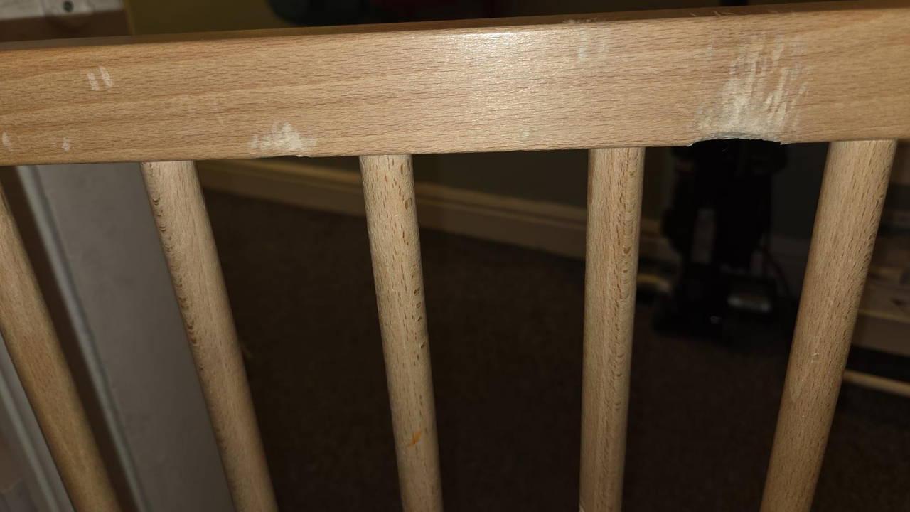 Junior önce beşiğini kemiriyordu; onu çocuk karyolasına geçirdiklerinde ise bu kez çocuklar için kullanılan çitli güvenlik kapısını kemirmeye başlamış.