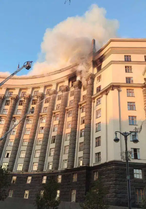 Ukrayna Başbakanı Yulia Svyrydenko, Telegram’dan yaptığı açıklamada, “İlk kez hükümet binası bir düşman saldırısında zarar gördü. Çatı ve üst katlar hasar aldı. İtfaiyeciler yangını söndürmeye çalışıyor” dedi.