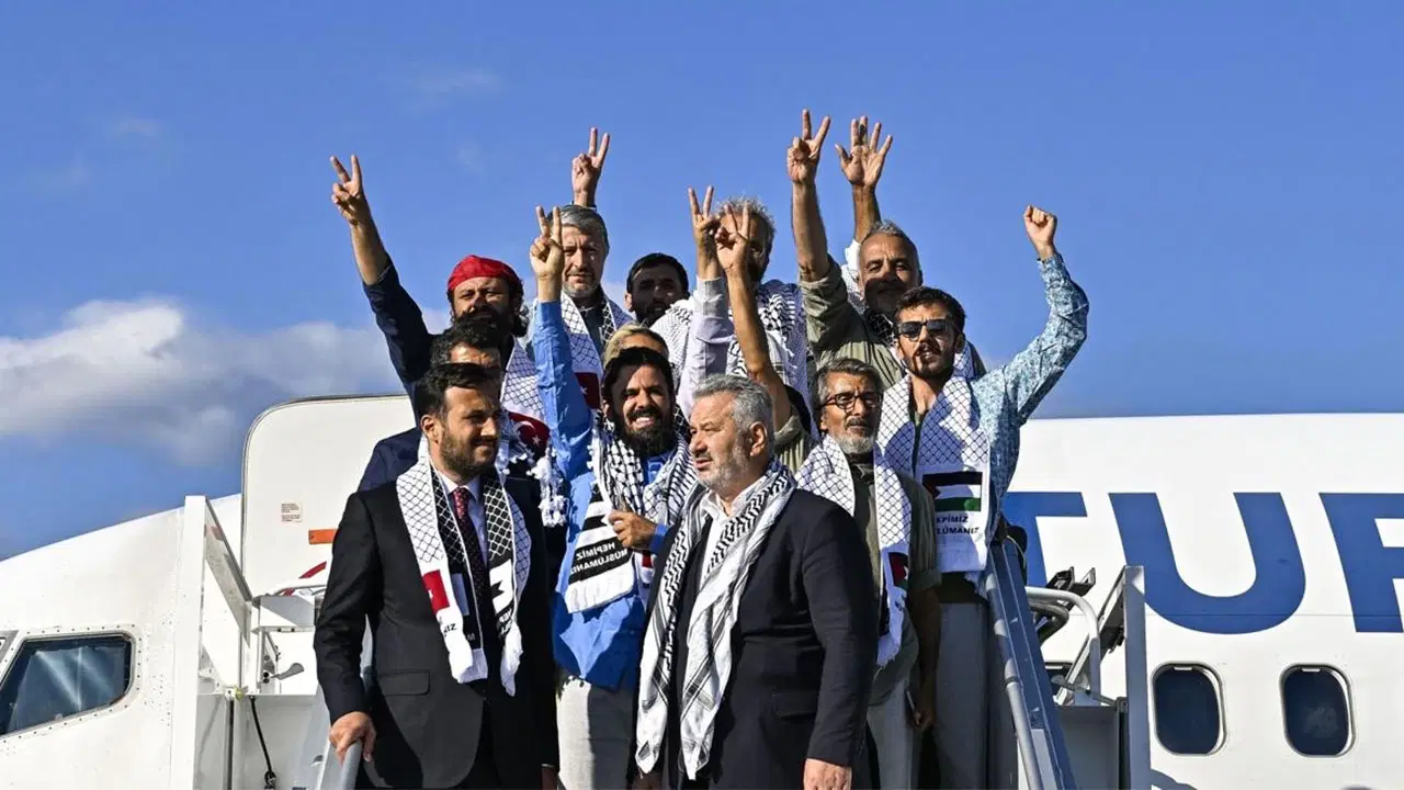 İsrail güçlerinin el koyduğu Küresel Sumud Filosu’nda yer alan 36’sı Türk 137 aktivist Türk Hava Yolları’nın uçağıyla İstanbul Havalimanı’na geldiğinde AKP heyeti tarafından karşılandı.