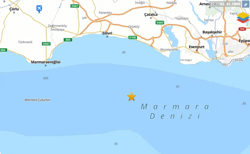 Afet ve Acil Durum Yönetimi Başkanlığı (AFAD), İstanbul Büyükçekmece açıklarında 3.5 büyüklüğünde deprem meydana geldiğini açıkladı.
