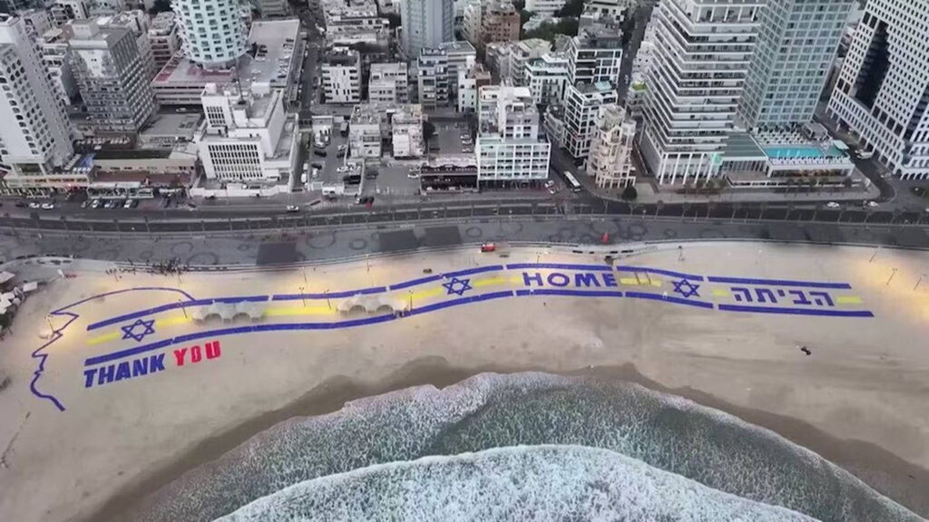 ABD Başkanı Donald Trump, İsrail’e yaptığı ziyarette Ben Gurion Havalimanı’nda büyük bir karşılama töreniyle karşılandı. Trump, inişi sırasında Tel Aviv sahilinde dev bir “Teşekkürler” yazısının üzerinden geçerken, İsrail Başbakanı Netanyahu ile ilişkilerinin hızla çözülen geçmiş anlaşmazlıklarını vurguladı.