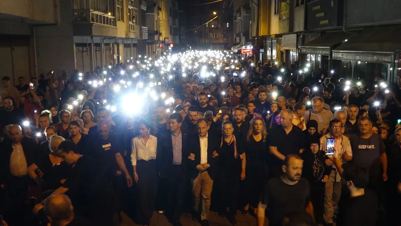 Trabzon’da boşanma aşamasındaki Ali Somun tarafından tabancayla vurularak öldürülen gemi kaptanı adayı Sinem Somun için Beşikdüzü ilçesinde el feneri, mum ve ışıklarla ‘Karanlığa ışık’ adlı kortej yürüyüşü düzenlendi.