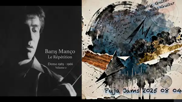 TEK parça ama 29 dakika sürdüğü için buna single değil, albüm muamelesi yapmayı daha uygun görüyorum. Sadece süresinden değil, hem ruhen hem de konsept açısından “Puja Jams 2025 08 04” tam bir albüm. Çalındığı tarihi işaret adla zikredilen albüm, akustik gitarda Çağlayan Yıldız, akustik perdesiz basta Toros Yıldırım ve davulda Görkem Efe’nin duhulüyle gerçekleşmiş. Olay mahalli ise Çağlayan’ın Antalya’daki stüdyosu… Puja Jams projesi, adından da anlaşılacağı üzere, müzisyenlerin herhangi bir yazılı notasyona bağlı olmadan, jam kültürünü çerçevesinde bir araya gelerek içlerinden geldiği gibi çalarak ortaya çıkardığı doğaçlama kayıtlardan oluşuyor. Buna gönül rahatlığı içinde modal atmosferli özgür caz diyebiliriz. Dijital platformlarda yayınlanan komplike eser, yetmişli yılların uhrevi fusion oturumlarını anımsatıyor bize; ziyadesiyle hipnotik ve rafine. Bu faaliyet bir ilk ve bu isimle bir seri olacak, her bölümde farklı müzisyenlerle ilerleyecek. Anın icrasına yer vererek yeni keşifler sağlayacak. Kısır müzik iklimimiz için mainstream olmayan müzisyenler için iyi bir fırsat.
