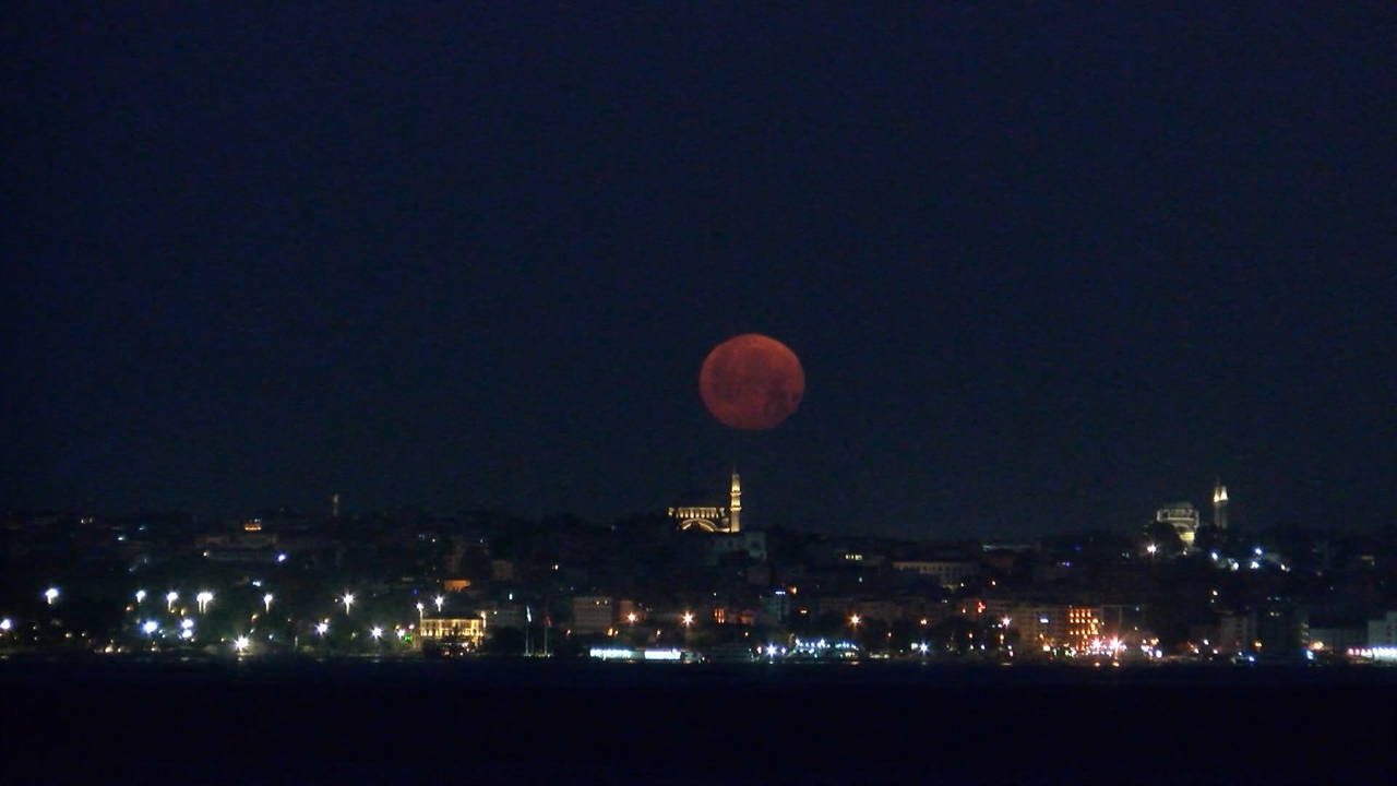 Saat 04.30 sıralarında görülmeye başlanan ve 04.55’te tamamen batan Çilek Dolunayı, Beşiktaş Ortaköy sahilinde eşsiz görüntüler oluşturdu.