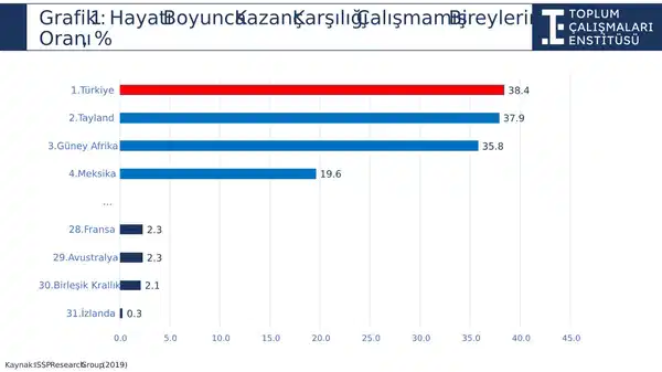 Öte yandan datalar, Türkiye’de faal nüfusun yüzde 38.4’ünün, hayatı boyunca hiç çıkar karşılığı çalışmadığını gözler önüne serdi. Kelam konusu oran Taylan’da yüzde 37,9, Güney Afrika’da ise yüzde 35,8 olarak ölçüldü.